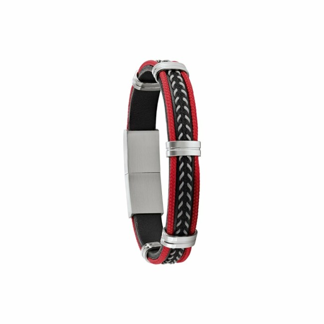 Bracelet Jourdan Bijoux Noir Cuir Cuir Graham en acier et tissu rouge et noir
