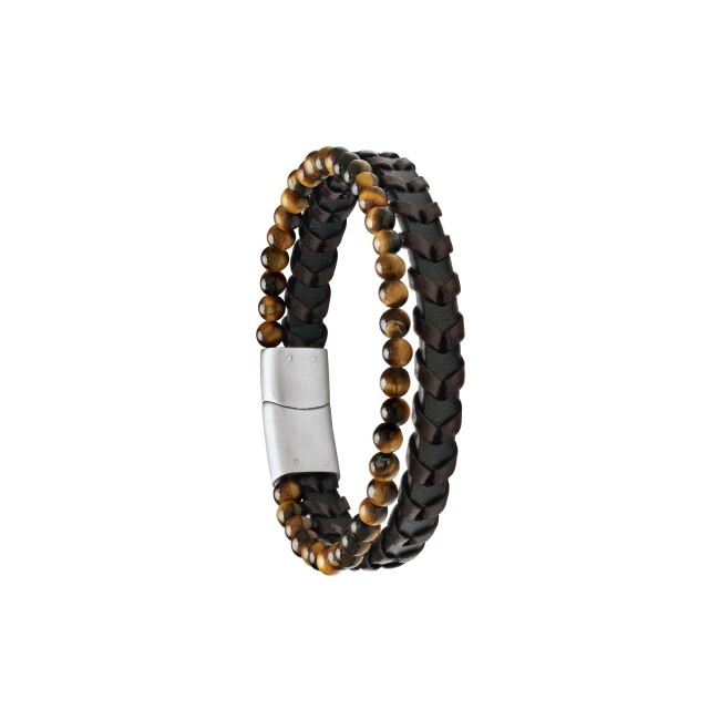Bracelet Jourdan Bijoux Lave en cuir, acier et œil de tigre