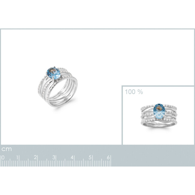 Bague en argent rhodié, oxydes de zirconium et pierre synthétique