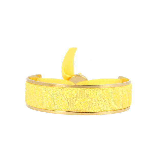 Bracelet jonc Les Interchangeables Ruban 12mm Glitter Ramage en métal doré et tissu
