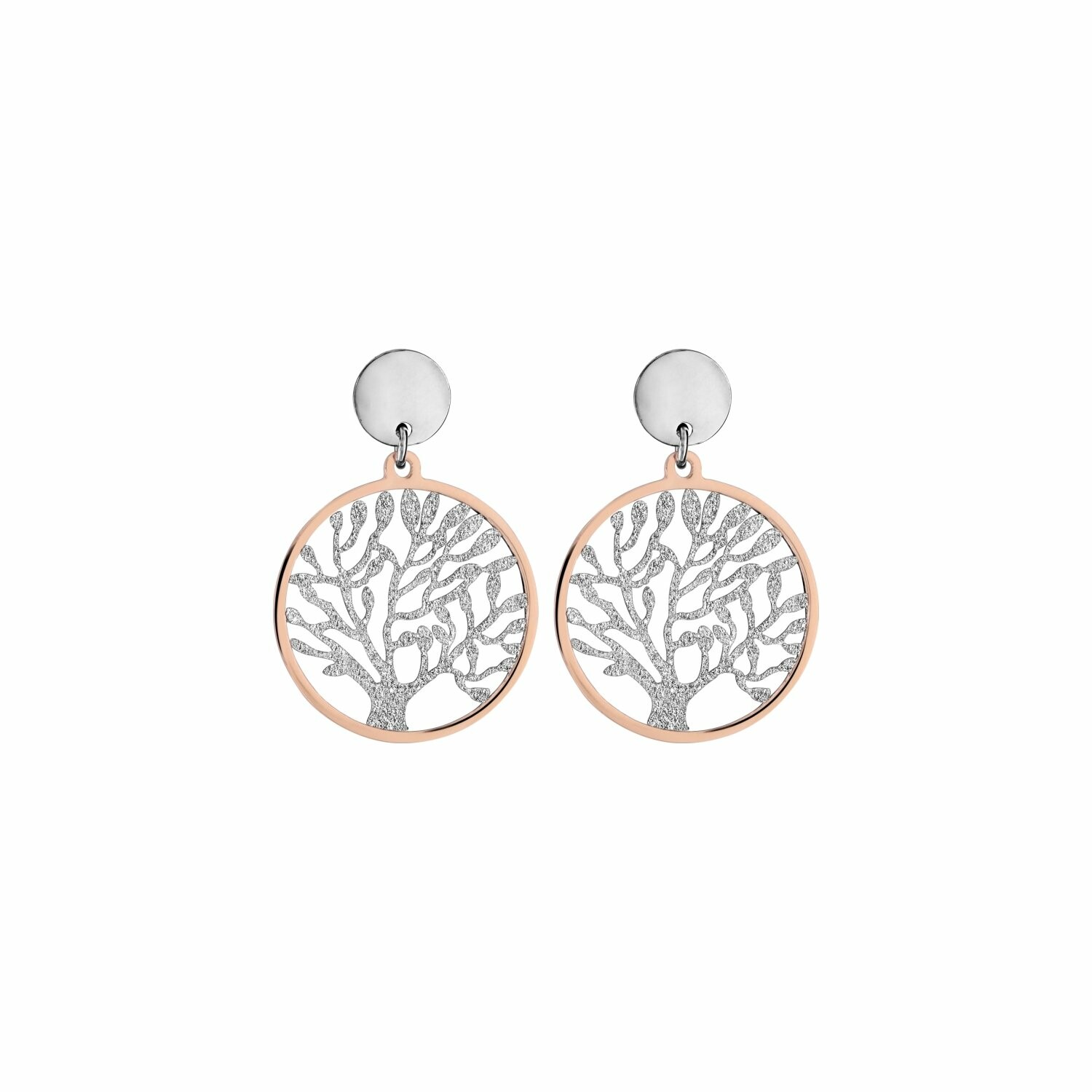 Boucles d'oreilles tige en acier arbre de vie givre contour en métal doré rose Description détaillée