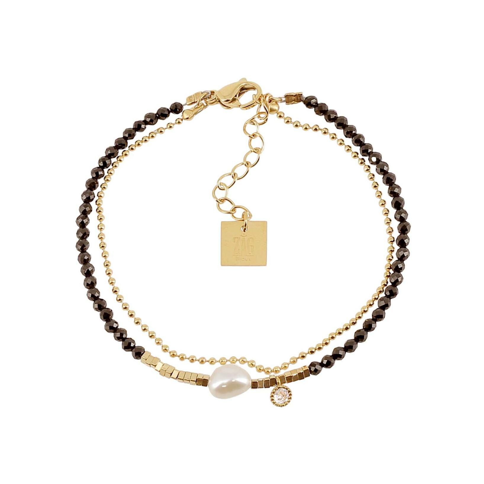 Bracelet Zag Ecrin en acier doré et oxyde de zirconium, Noir Description détaillée