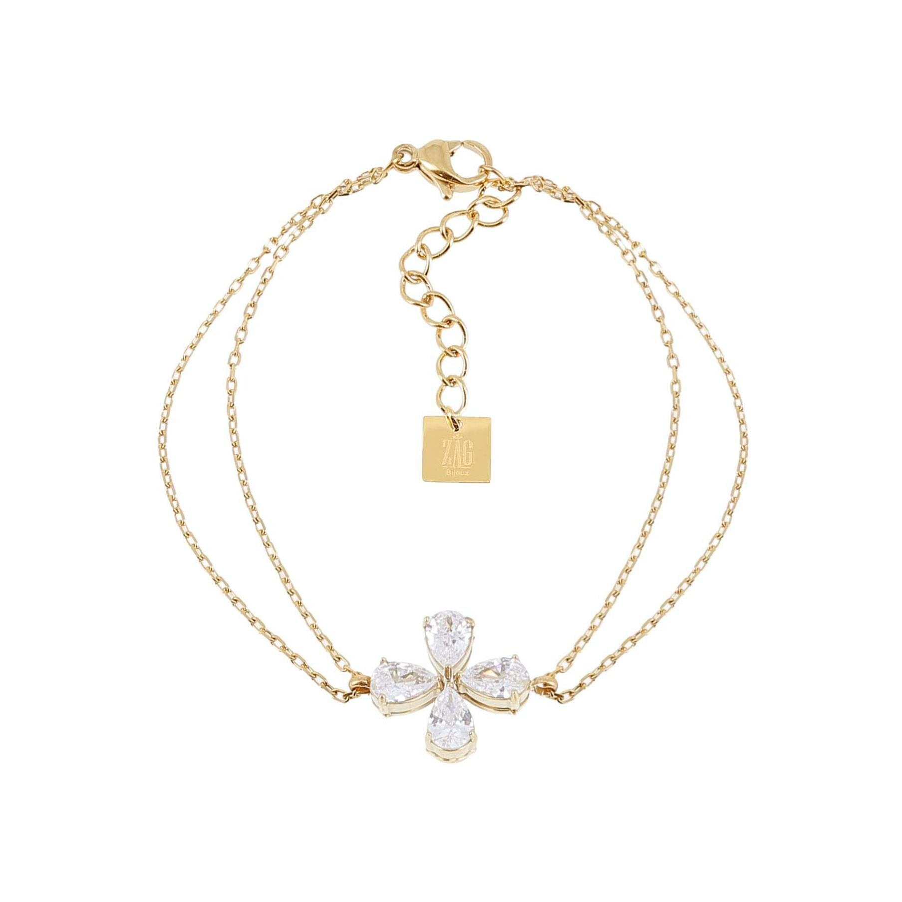 Bracelet Zag Estial en acier doré et oxyde de zirconium, Blanc Description détaillée
