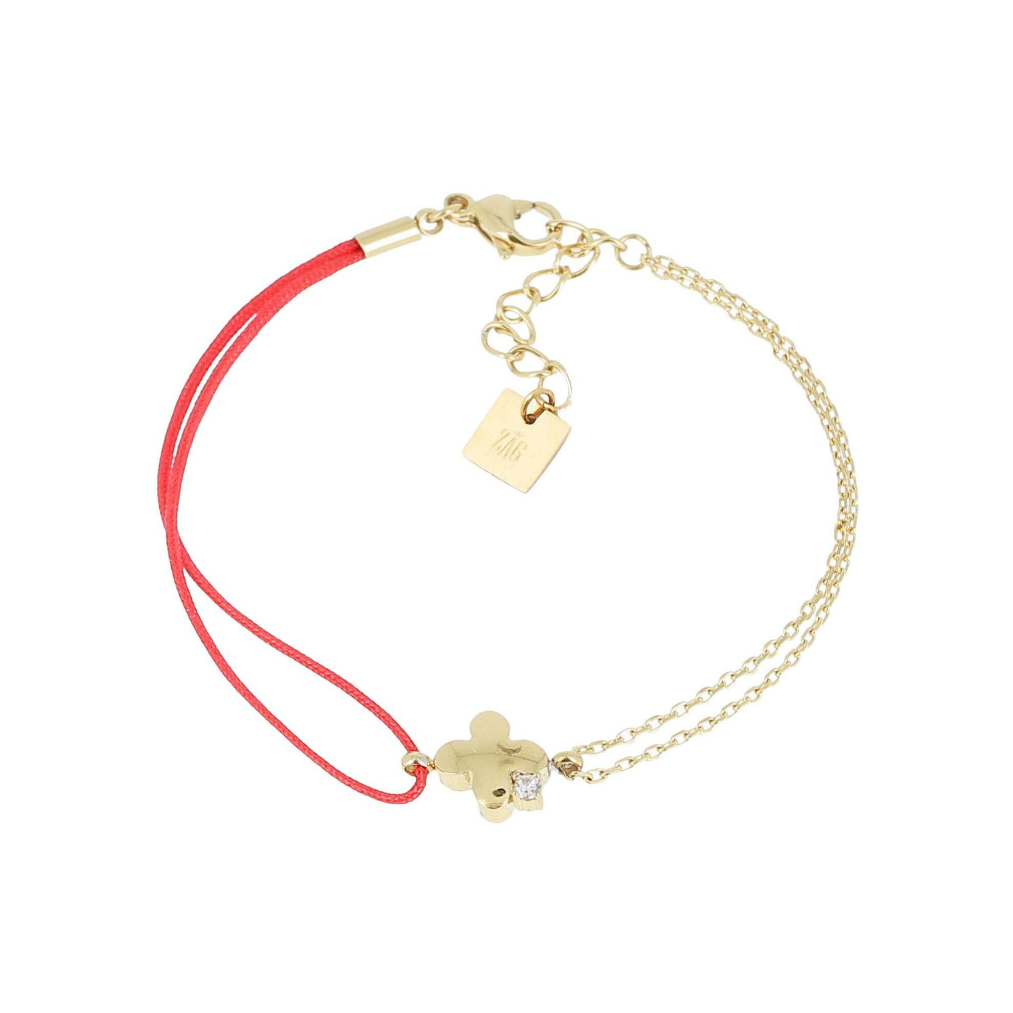 Bracelet Zag Lyric en acier doré, textile et oxyde de zirconium, Rouge Description détaillée
