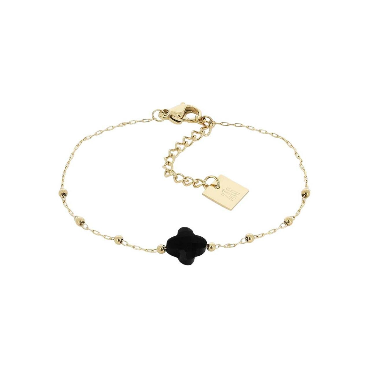 Bracelet Zag Velasquez en acier doré et onyx noir Description détaillée