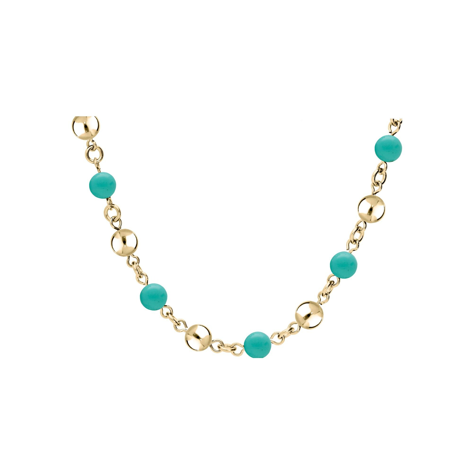 Collier acier et pvd doré marseillais boules jade bleu véritable 40+5cm Description détaillée